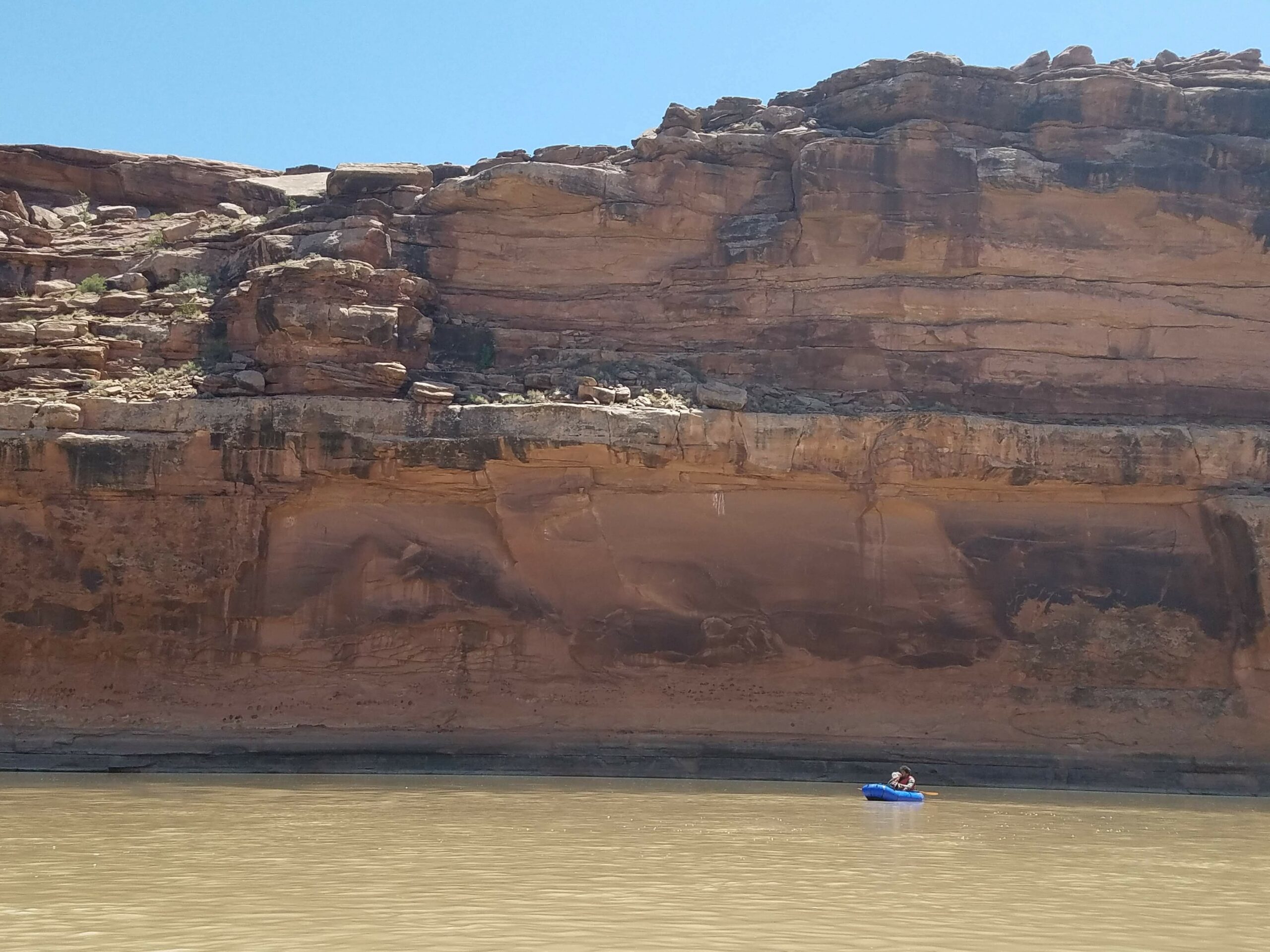 A ½ mile hike down canyon brings us to the confluence with the river. How do we get out of here anyways? It’s a good thing we’ve been carrying these boats all day! In a matter of a few minutes, our boats are inflated and we load our packs in the front of the boat in preparation for a 5 mile, calm water float.