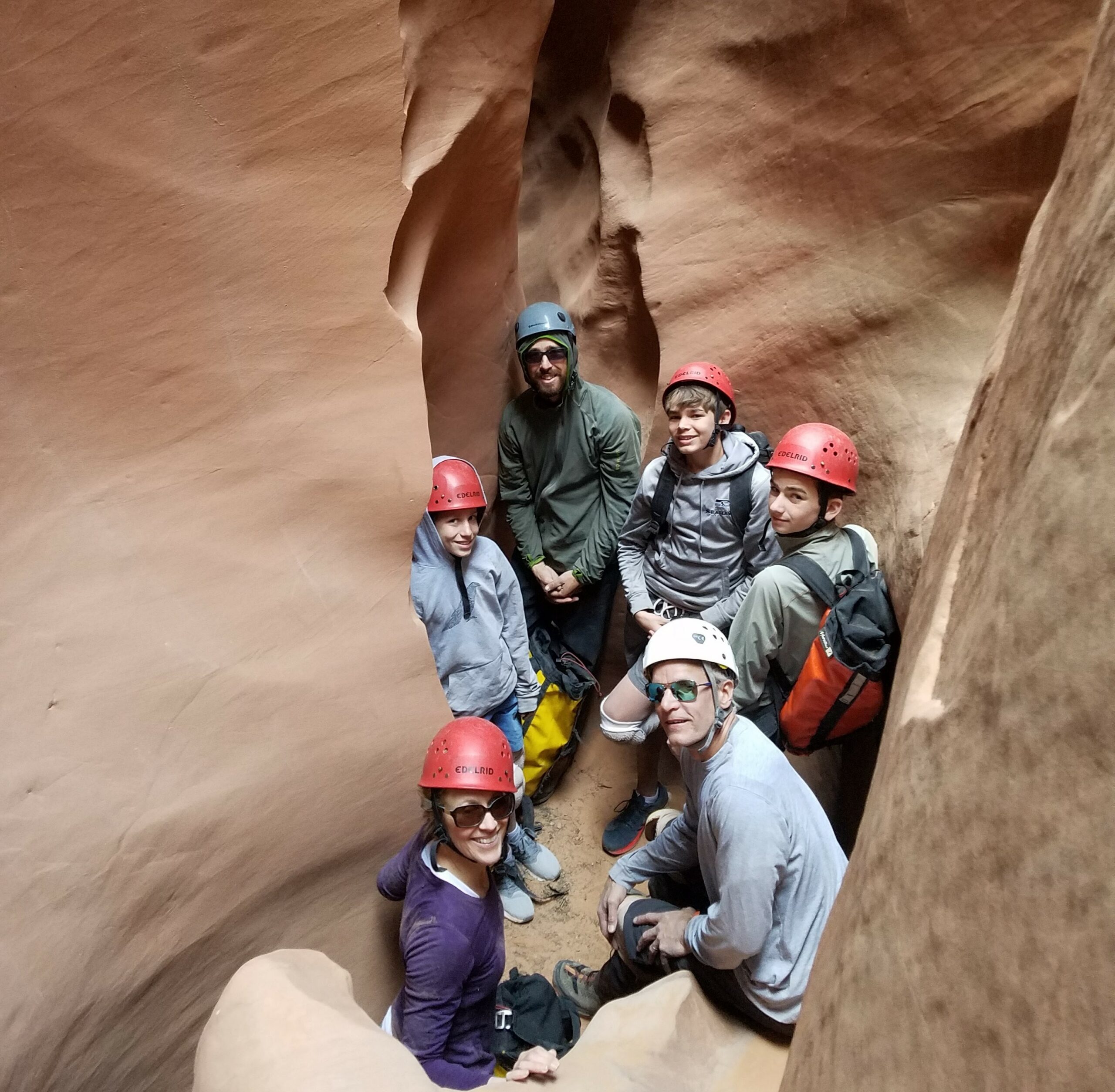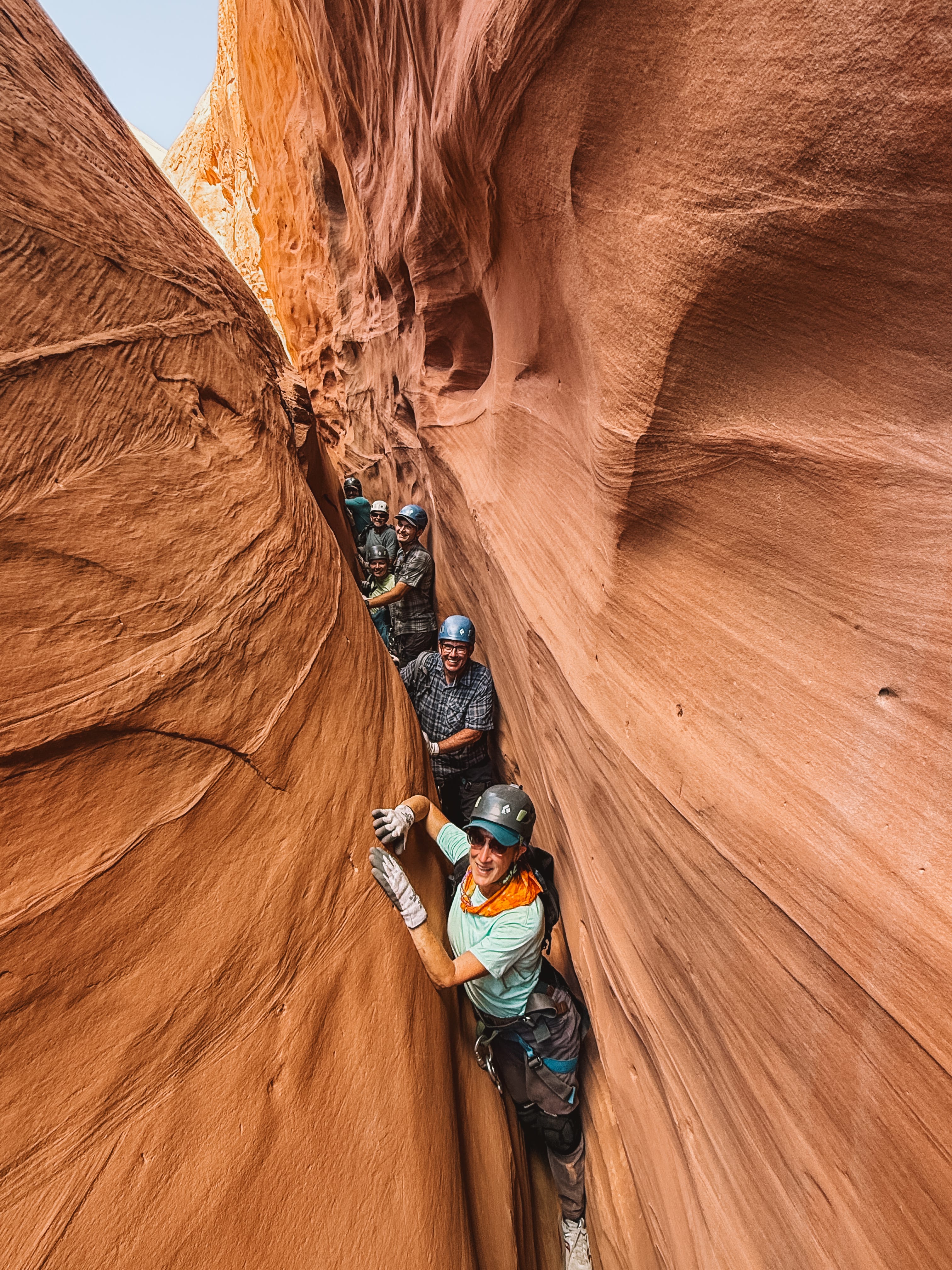 In no time, you’ll be headed into the canyon of your choice to explore the slots that you just saw from the air. You’ll be rappelling, sliding on your butt, helping your partners, and learning many new techniques that will allow us to safely navigate this ever-narrowing terrain. These canyons are tons of fun and you’ll find yourself doing things you never imagined were possible! Once the canyon allows the space, we’ll enjoy a relaxing and well deserved lunch and eventually find our way back to the vehicle.