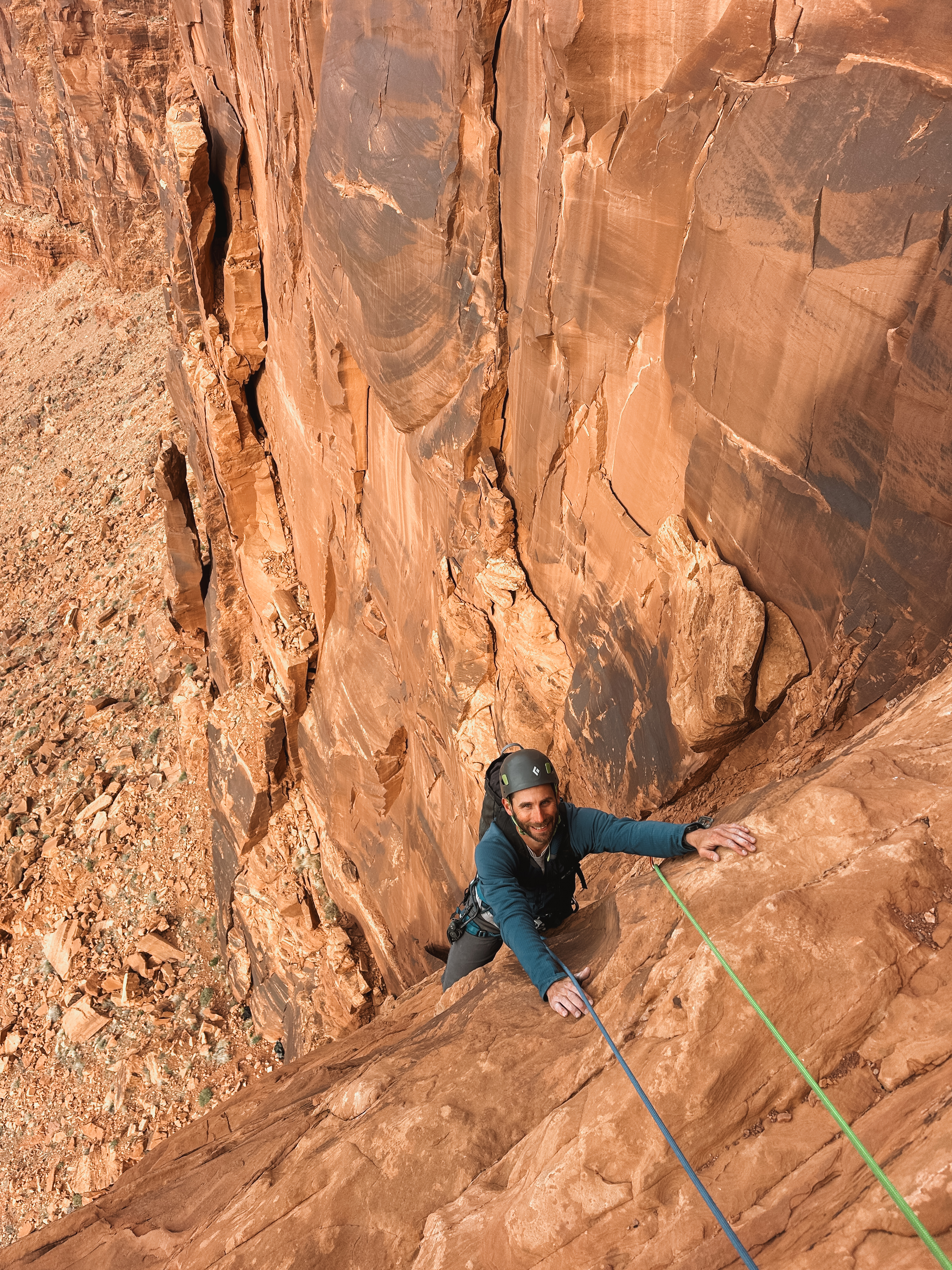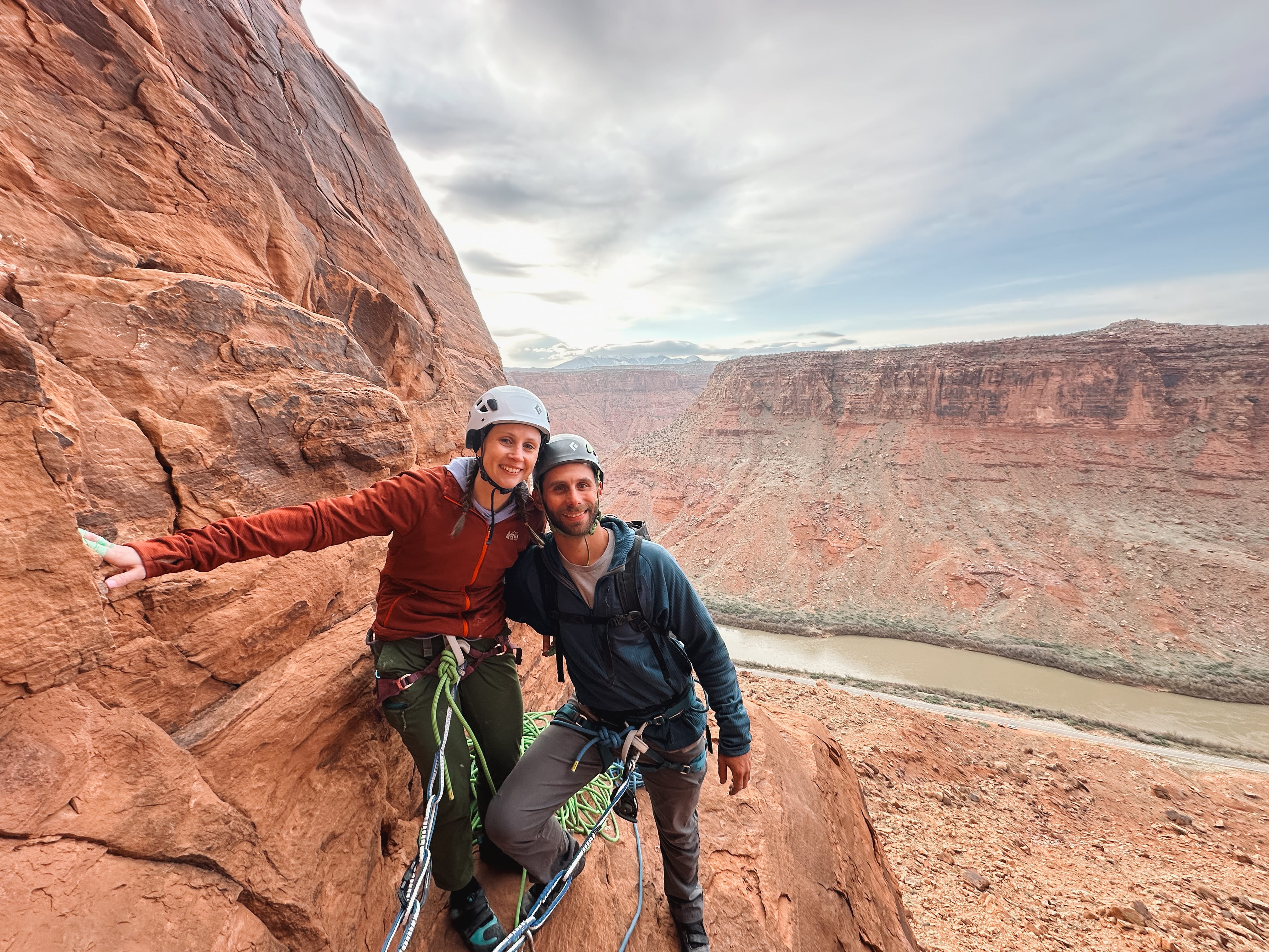 Terma is positioned hundreds of feet above an amazing bend in the Colorado River. A rim route that entails mostly face climbing, this unique multi-pitch rock climb is unlike many of the other famous multi-pitch climbs in the Moab area. Terma presents a great opportunity for new and experienced climbers to learn the ins and outs of multi-pitch climbing while reaching a spectacular summit.