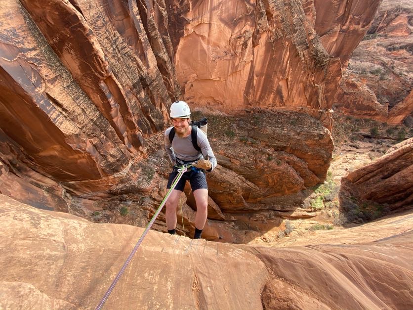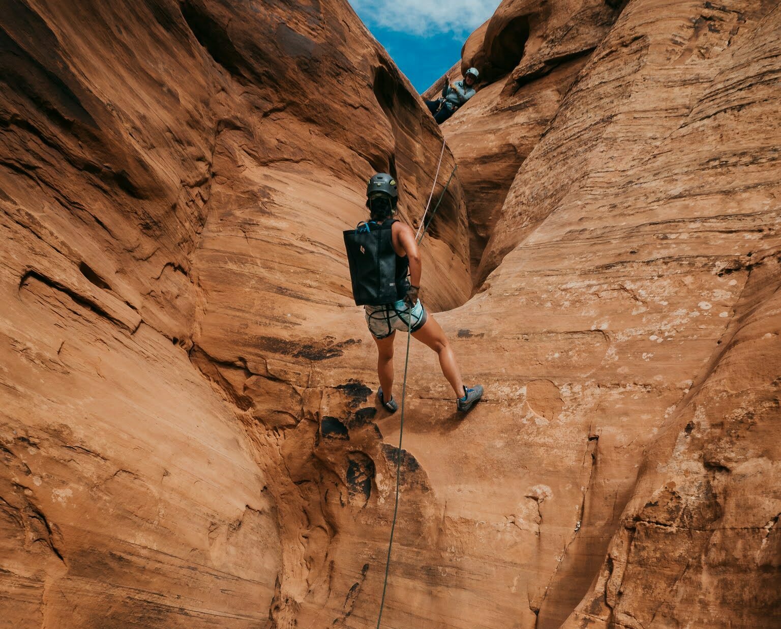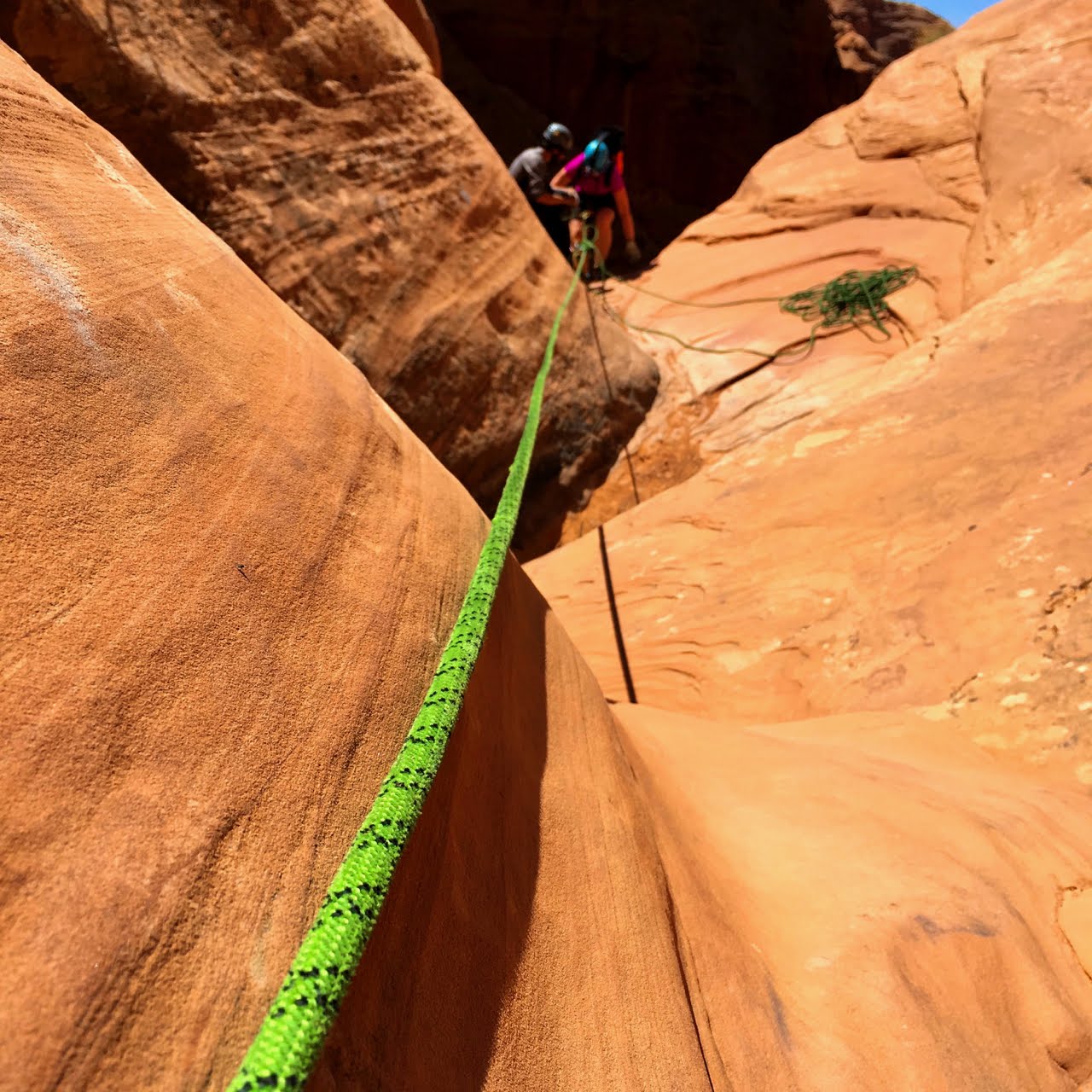 Zig Zag Canyon does have 2 short rappels that are great for an introduction to rappelling. The canyon ends with a huge, 220-foot rappel. All 3 rappels are mandatory.